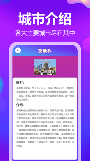 - 用户可以了解俄罗斯的历史、文化、地理以及主要城市的介绍,基本上的各种俄罗斯的内容都在这里;