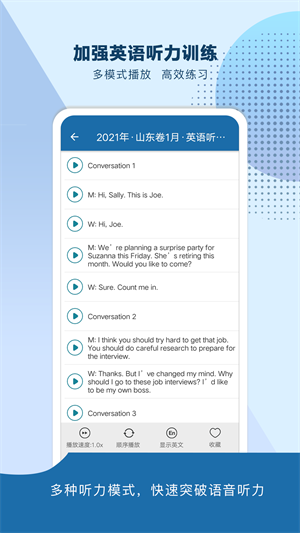 - 加强英语听力训练,用多模式在线播放训练,大大提高大家的英语听力,用高效训练的模式提高听力。