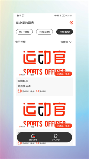 - 资源官代表体育相关的机构、工作室、个人教练等通过将线下课程、共享场地、视频教学等发布到商家版平台并设定推广佣金;