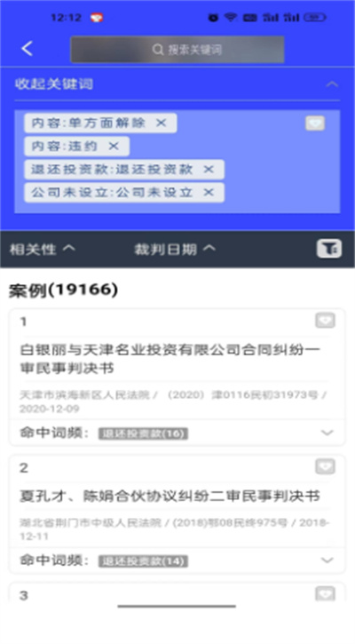 1、平台给予各种不同原因的案件搜索,让用户可以找寻到相似的案例了解;