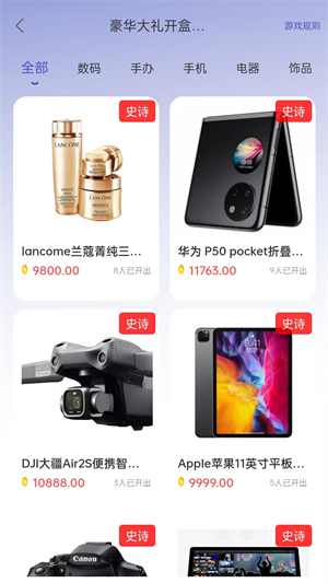 - 涵盖的盲盒商品很丰富,还会随机放一些贵重商品,各种数码手机以及生活之类的商品都在这里可以轻松的买到;