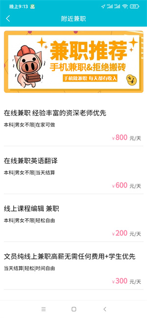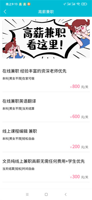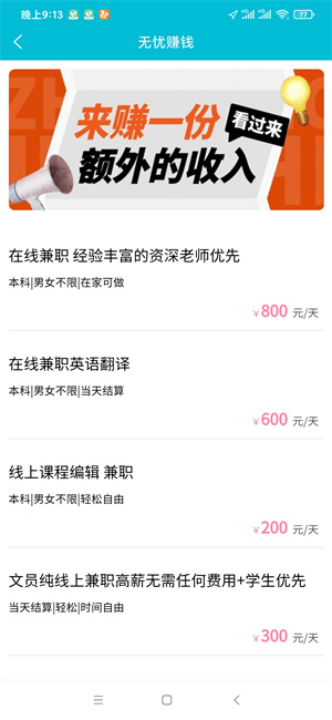 - 非常适合学生、宝妈、白领等人群利用空闲时间提高收入,用简单、轻松、便捷的工作方式呈现给网络兼职用户群体;