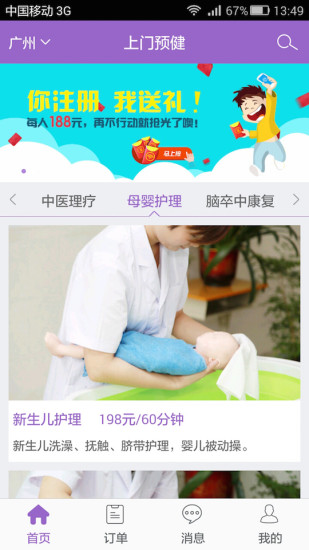3.提供个性化医疗健康预约到家服务,服务范畴涵盖康复、护理、中医理疗三大类。