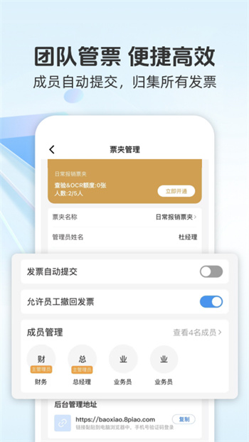 - 管理你的个人发票,根据报销状态、标签等进行分类管理,自定义发票标签,轻松完成发票管理;