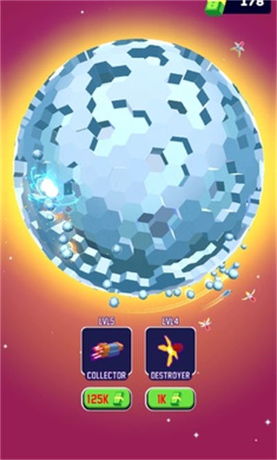 游戏十分的简单刺激,每次进行摧毁小行星都可以获得大量资源,打造出自己的战舰来进行更高的挑战,直到摧毁所有小行星成为宇宙的霸主,超多炫酷的外观和华丽的技能,每次升级都会让他们变得更加强大,我们要为了成为宇宙霸主为之奋斗。