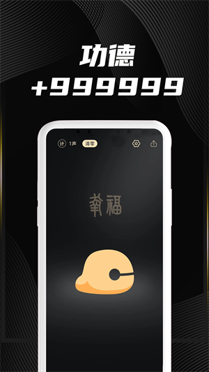 - 简洁的界面带来了木鱼敲击玩法,点击屏幕就可以敲木鱼,每次敲击可以听到对应的声音和悬浮文字;