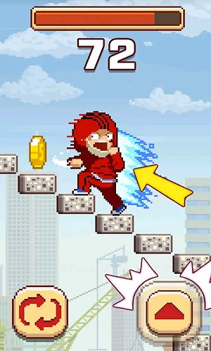 十分魔性的休闲闯关手游,手游玩法独特,操作简单,在游戏里玩家在游戏里面需要控制小人沿着阶梯不断往上跳跃,挑战你的手速和反应极限,看看自己的极限是多少,每一次的闯关都要突破自己的极限。