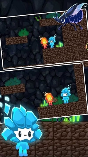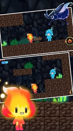是一款横版闯关动作游戏,红火人的兄弟蓝冰人失踪了,穿过森林,躲避或消灭怪物,帮助红火人找到蓝冰人,一起安全回家。