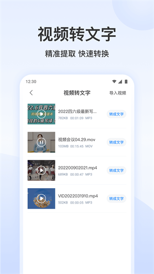 3、【音频格式转换】支持MP3、WAV、M4A、AAC、AMR、FLAC等格式的音频文件互相转换格式,转换过程快速(秒级),转换后可实现快速转换文字;