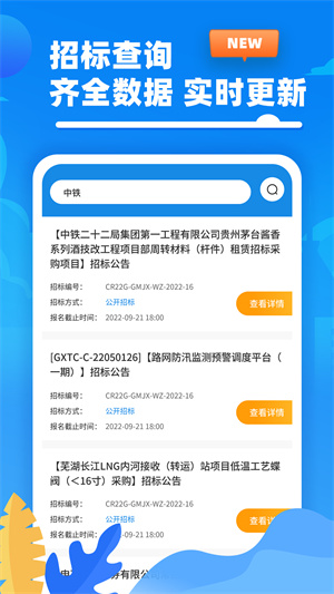 - 招标公告项目实时查询的服务功能,让用户可以随时查看招标预告、公告、中标、变更、采购等信息;