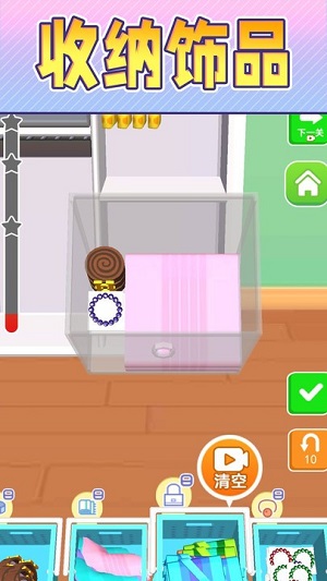 1、可以在游戏里面体验到不同的整理方式,学到更多的收纳技巧;