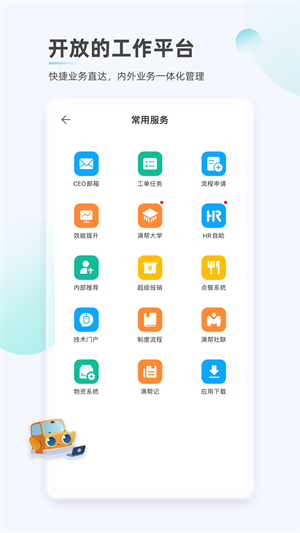 满帮家让大家轻松移动办公,功能强大的商务和办公移动应用,为企业数字化转型提供高质量服务,灵活的审批流程机制,解决组织内部的各种审批需求,高效处理日常工作安排,使内部管理更加高效有序。