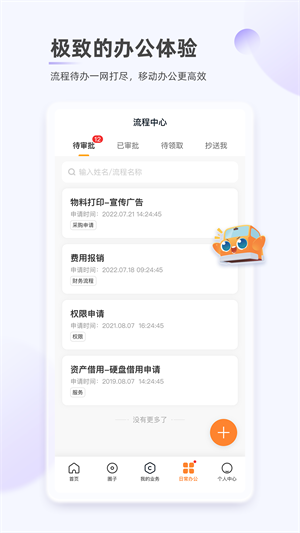 3、集成财务、人事、行政、CRM、流程等各业务系统,打造一体化工作体验,为内外业务赋能,提供高效的移动办公体验,让工作更简单。