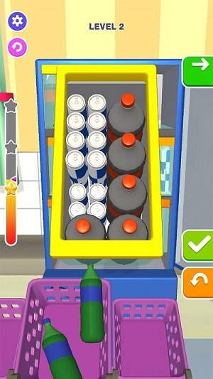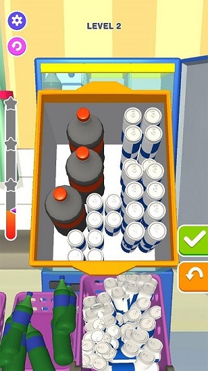 每天八杯水是一个休闲类型的游戏,在游戏里面画面非常的简约,玩家需要将场景里面的饮料瓶子全部放在冰箱里面,合理的使用冰箱的空间去整整齐齐的整理好瓶子,玩起来也是非常有意思的,玩法也是非常简单的。