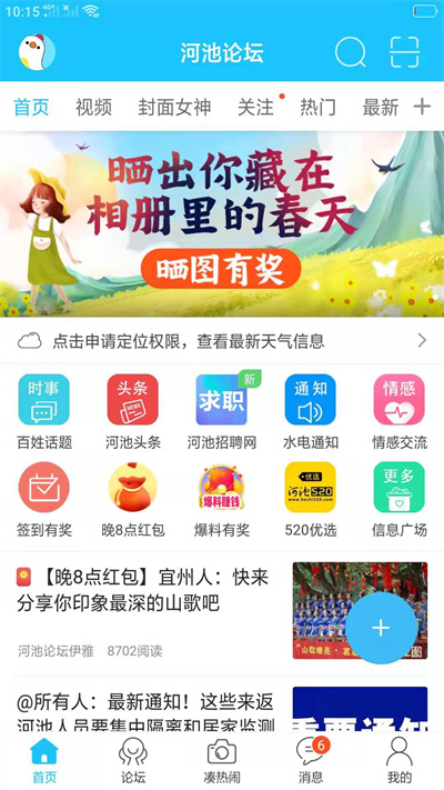 河池论坛app是一款针对为河池本地用户们所打造的讨论社区手机应用,该平台在针对功能的使用上,可以说是非常的丰富,功能也是十分的强大,我们可以在该应用中找到拥有当地的热门头条等等。