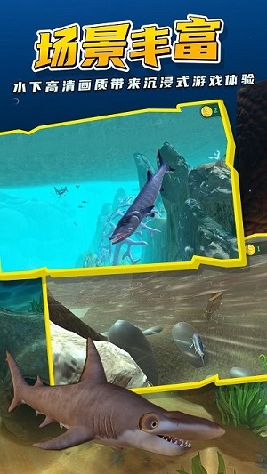 海兽猎人经典的大鱼吃小鱼游戏,游戏模拟真实的海底世界,从小虾这里开始,不断地吞噬海藻进化,然后一步步吞噬小鱼,逐渐进化成大白鲨,玩家扮演海洋中的一条小鱼,通过吃掉其他小鱼而进化,成为海洋中食物链顶端的生物。