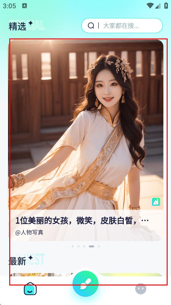 4、登录成功后,进入APP主界面,可浏览精选AI画作等内容。