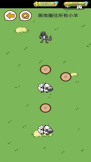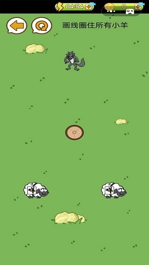3、只要弄清楚如何保护小羊,就可以快速划线挡住狼群。
