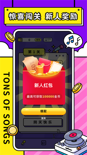 猜歌达人赚钱让用户可以邀请自己的朋友一起在线进行各种猜歌服务,新用户的福利也非常多,你也可以获得很多的邀请用户的奖励。