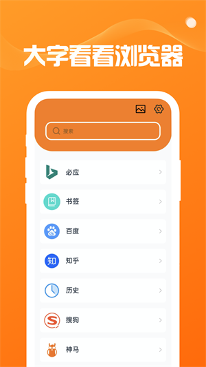 大字看看浏览器让搜索更加轻松,整个界面的字体比典型浏览器中的字体更大,可以快速找到你想要的新闻信息和内容,使用你的浏览器阅读感兴趣的内容,超级好用的通用浏览器。