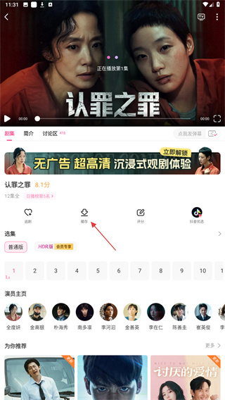 1、打开韩小圈APP,在首页的推荐或分类区域找到想要缓存的电视剧,点击其封面进入播放页面。