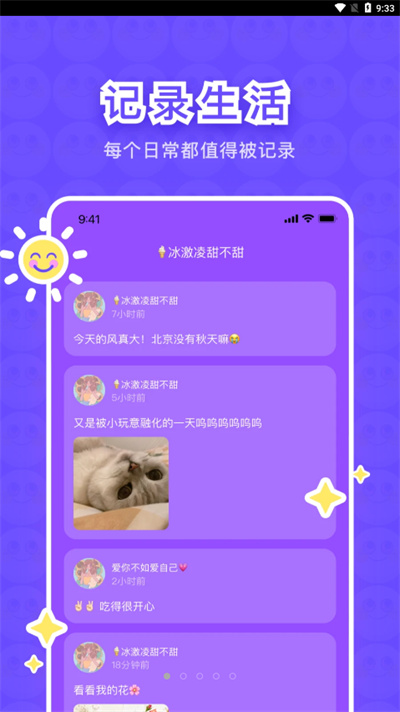 1、可以轻松记录自己的社交日常,也可以结交平台的各位朋友;