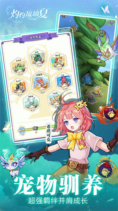 2、有多种不同的宠物可选择饲养,选择自己喜爱的宠物,不但可以增强羁绊值,还能够一起并肩作战;