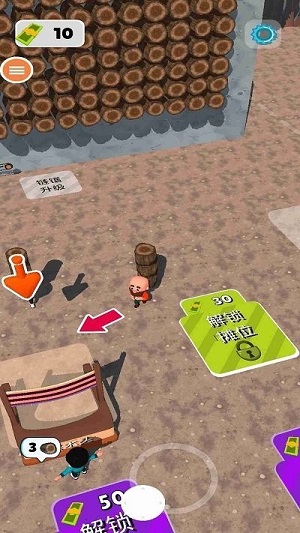3、通过砍伐树木赚取更多金币,使用金币,您可以升级您的员工,提高他们的砍树效率。