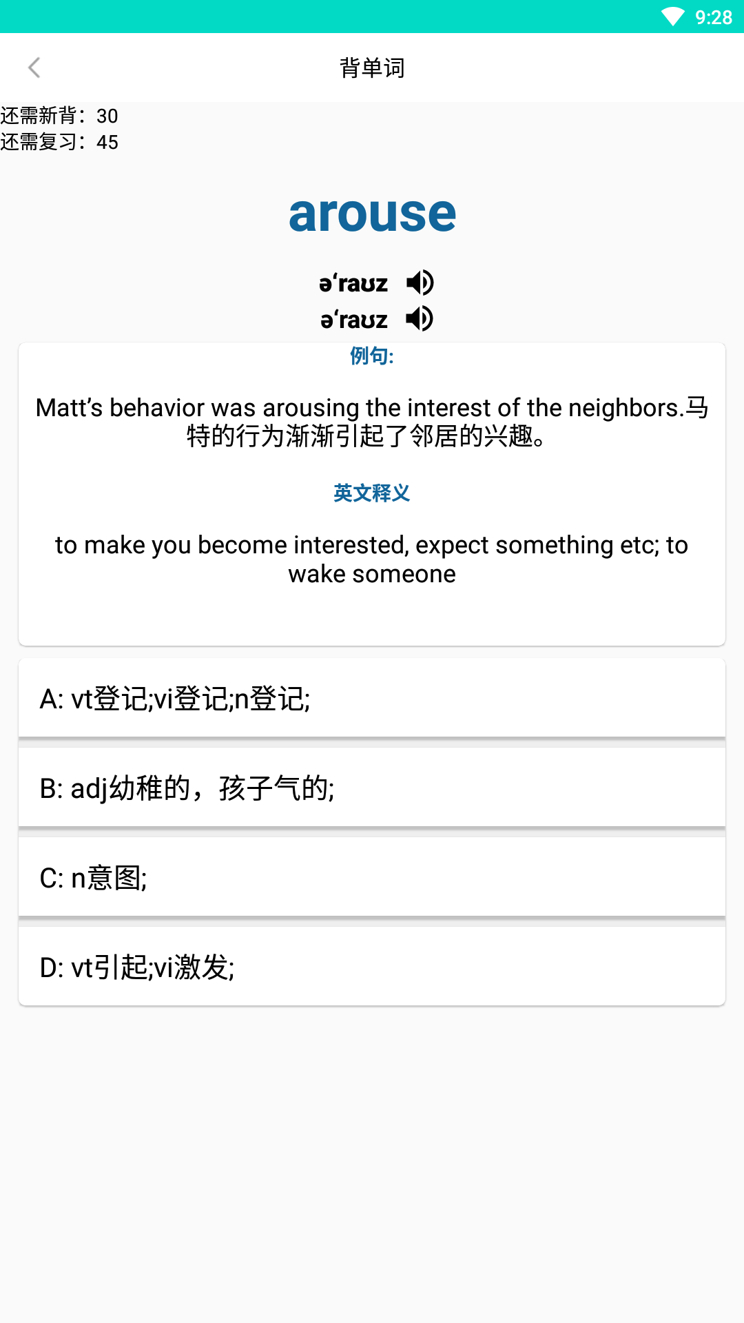 3、一键收藏功能,可以将重点单词收藏起来,实时的进行复习学习。