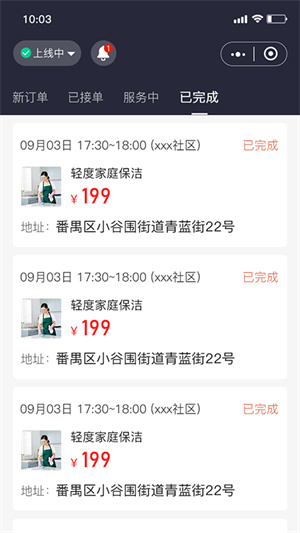 - 用户可以轻松在线发布家政信息,自动定位就近的专业家政人员;