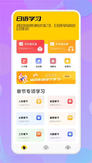 日语学习软件是一款让有兴趣学习日语的人能快速及容易学懂日语的简单学习软件,我们建议想去日本旅游、留学的朋友学习使用,在这里的各种日语学习知识也非常的丰富,用户可以轻松的进行学习,掌握了更多的日语知识。
