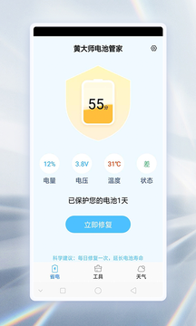 黄大师电池管家app是一个专业的检测电池的工具,软件操作简单,实时检测大家的手机电池,便捷的为大家提高信息数据,是大家管理手机的好帮手。