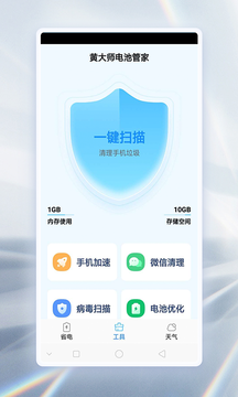 黄大师电池管家,可以帮助优化大家手机的电池,并且还会帮助手机降温,并且扫描可能导致用电过快的各种问题,一键解决问题,超级的方便简单,帮助用户实时管理手机的电池健康。