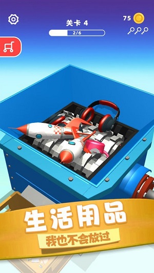3、不断解锁新的挑战,将更多的物品放入碎纸机。