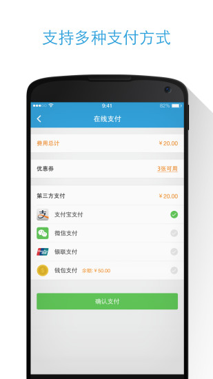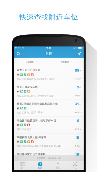 非常便利的停车应用,如下图所示你可以很清新的搜索定位,并选择支付方式