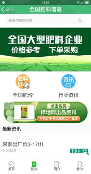 择地网app提供了超多的农业生产相关的资讯新闻内容,用户可以在这里查看到全国各类的农业行业资讯,平台还会给大家推送一些肥料等,还会实时的更新最新价格,让大家在这合理优惠采购。