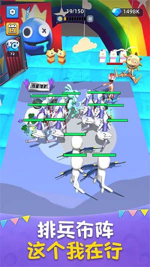 组合战争是一款策略类型的对战游戏,玩家将面向对面合成大型怪物,使用自己的士兵组成阵型,击败合成的怪物获得丰厚奖励,操作非常简单,非常易于使用,组成最强的彩虹好友阵容,通过简单的合成进化来对抗敌人,体验极其刺激的玩法,轻松击败对手。