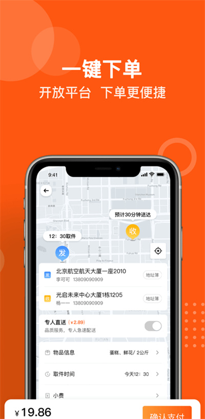 该应用可以给予大家各种优质的服务内容,在这里大家可以随时在手机上面下单,配送员就会快速接单,这个配送平台没有中间环节,能够让你的包裹更快的送达目的地,物流动态更是公开透明的方式给予用户们实时了解。