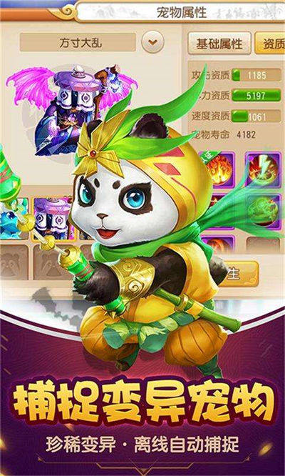 2、有趣的萌宠养成系统,玩家除了可以在游戏中捕捉到变异的宠物,战斗时还能随机爆出各项属性都特别强的神宠为你助战;