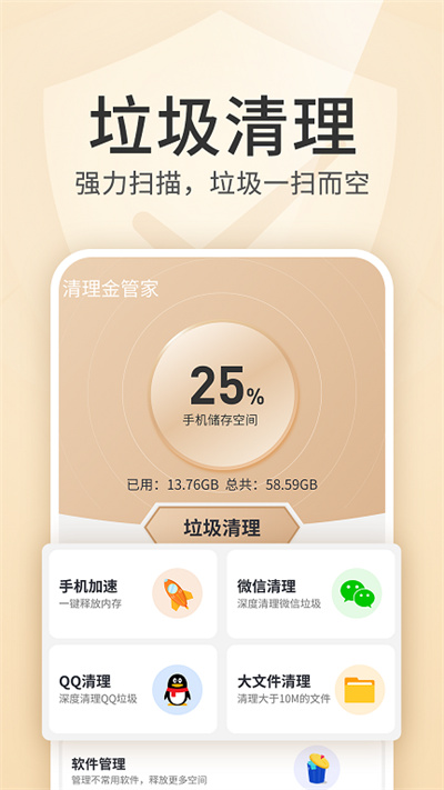该应用是一个非常值得大家认同和选择项目,大家在平时也能感受到不一样的选择,平时针对我国的各种手机清理软件上,该应用手机内存小但是功能丰富多样,可以满足大家对于手机清理软件的选择。