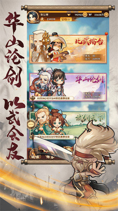 3、玩法自由,在这里玩家不但能升级闯关,还能收集卡牌、招募弟子、组建门派等,玩法多多。