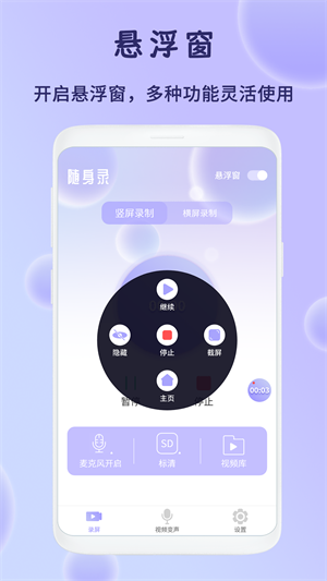 - 一键开启悬浮窗,通过悬浮窗来轻松录屏、截屏、变声等,多种功能灵活使用。