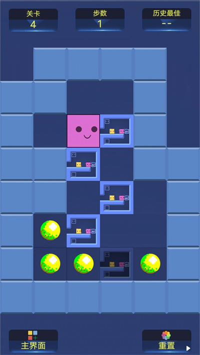 -每个关卡设计独特,难度不同,规划好行动路线,移动最少的步数通过关卡;