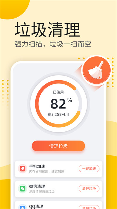 全能清理360度扫描无用垃圾,智能清理,使用更省心;