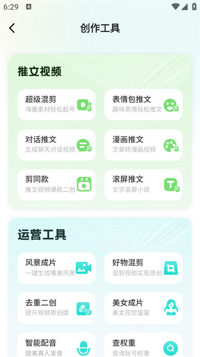 - 提供了各种文案、音效、视频素材等,通过合理的剪辑,可以提供精美的短视频。