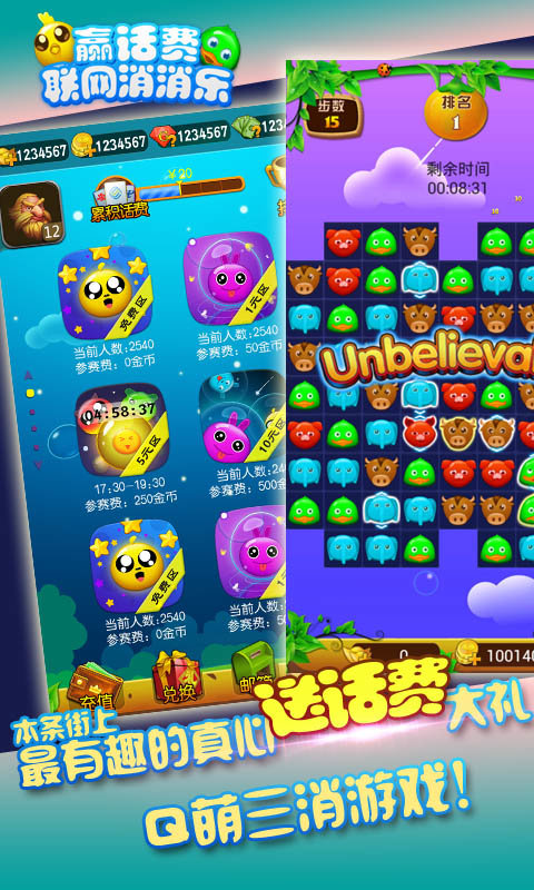 联网消消乐是一款消除类游戏,需要玩家用完美的操作去获得胜利哦,同时此游戏还可以让玩家在玩的过程中赢取话费哦,你还在等什么,空闲之时挣点话费何乐而不为呢?欢迎下载!