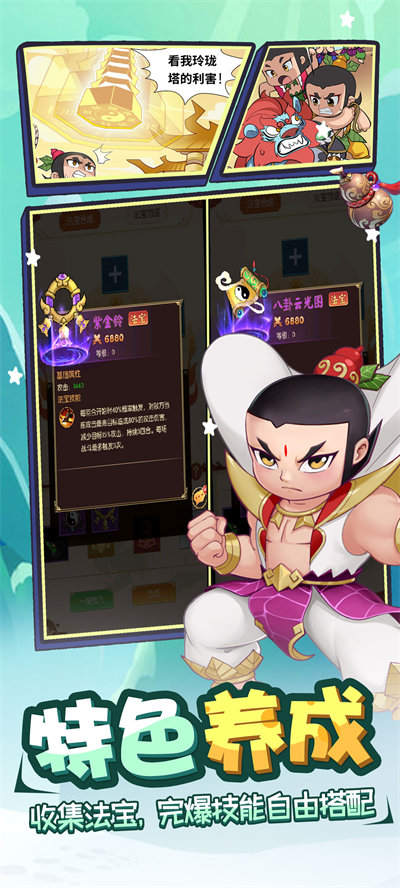 1、经典的动漫剧情,游戏以家喻户晓的动漫葫芦娃作为游戏的故事蓝本,围绕葫芦娃救爷爷的剧情发展一系列的故事,十分吸引玩家;