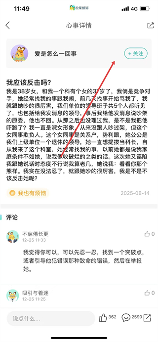 2、在心事页面找到目标用户发布的内容,点击进入详情页。