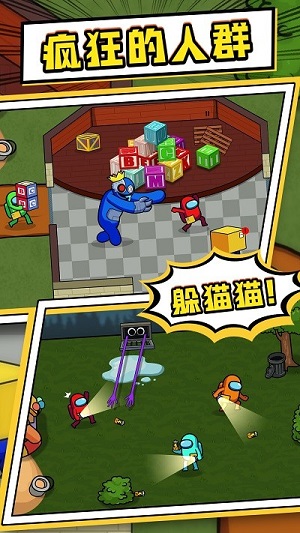 疯狂的人群多人逃脱冒险游戏,在游戏中,玩家将置身于怪物天堂,彩虹怪物密集,你需要生存五个晚上才能获胜,解锁道具,躲避怪物,他们不能被怪物抓住,它们可以成为周围的物体,把自己藏在现场,绝不能被发现。