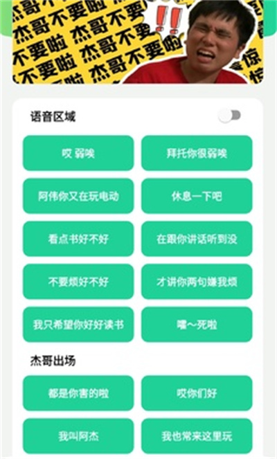 阿伟盒APP是一款非常受大家喜爱的一款恶搞类语音包的软件,大家在平时可以在这里找到各种新梗的语音选择,我们可以在平时看到更多不一样的语音内容,只需要用手轻轻一点就会出现语音。